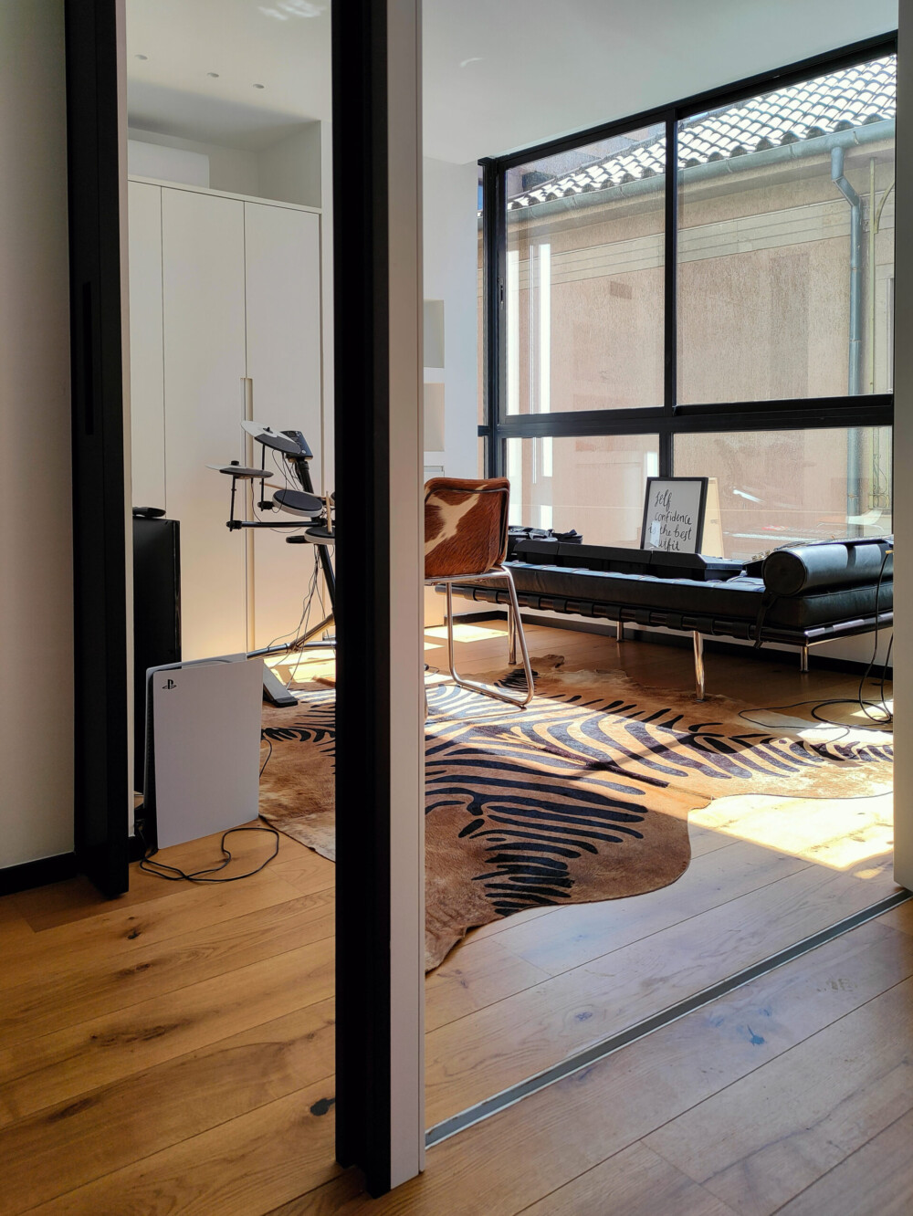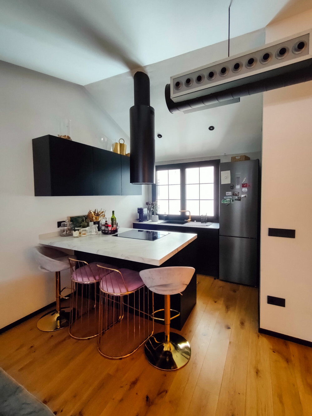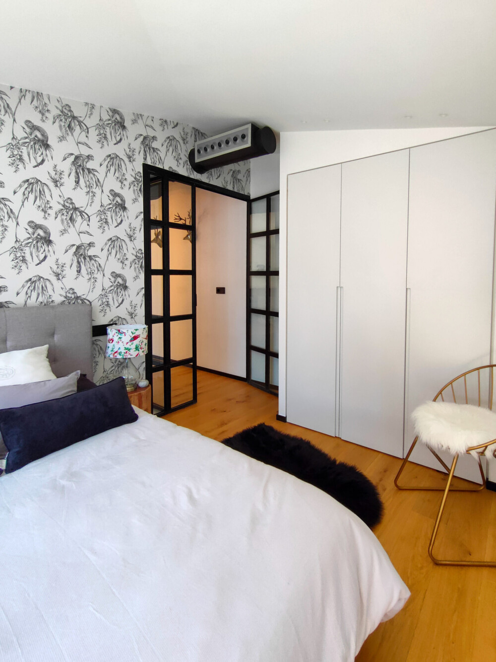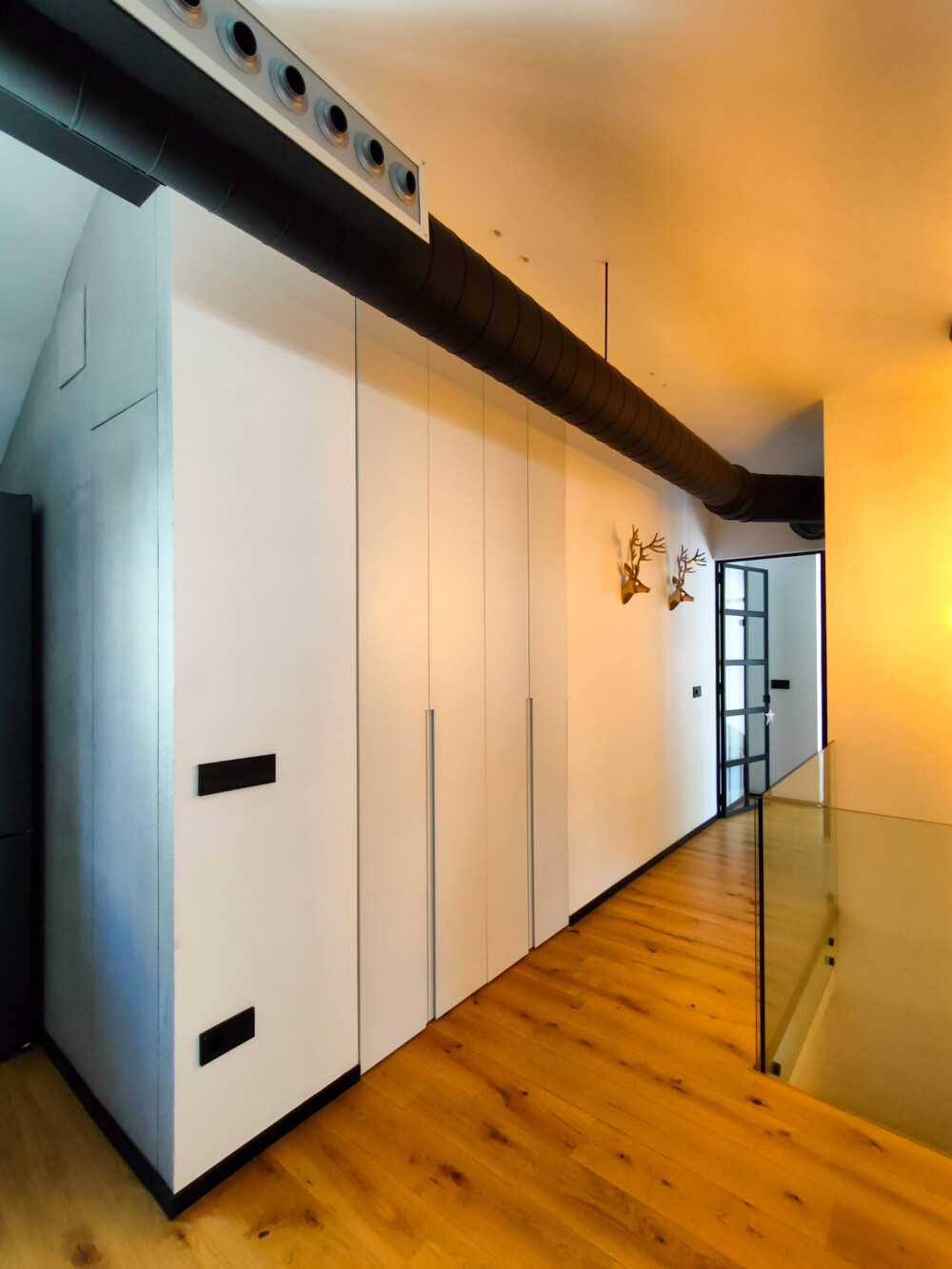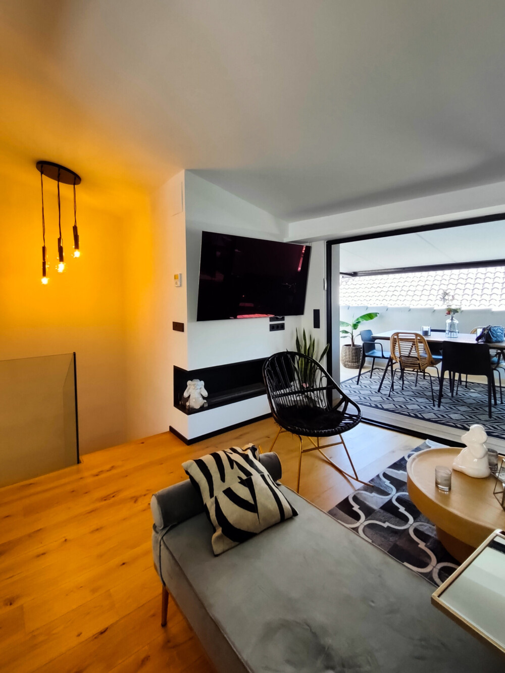 Duplex Penthouse in Castellón City Center. Complete demolition of a two-storey apartment. Partition walls and installations were completely demolished, as well as the two terraces of the penthouse and a new open plan and diaphanous distribution was made from scratch. The result is a bright, comfortable and beautiful home with clear contemporary accents.