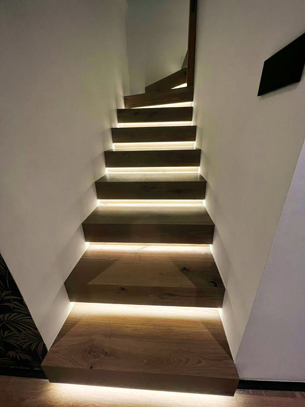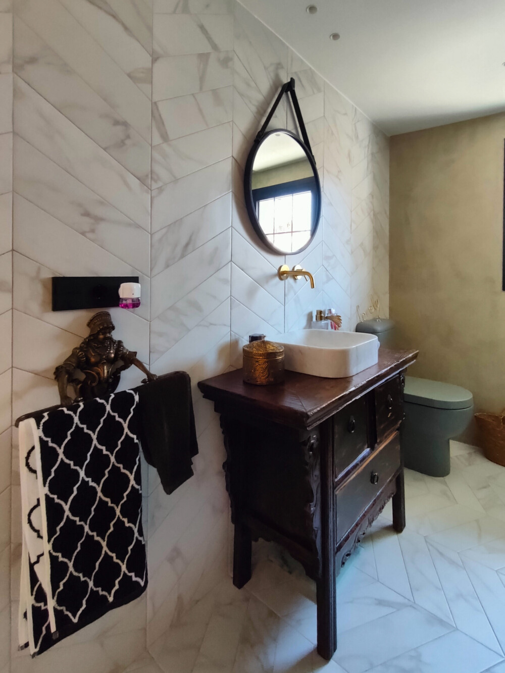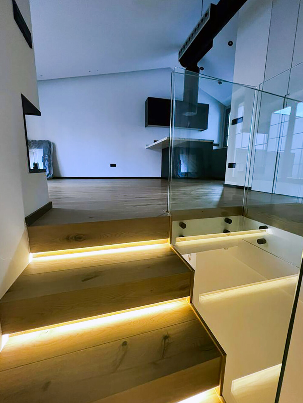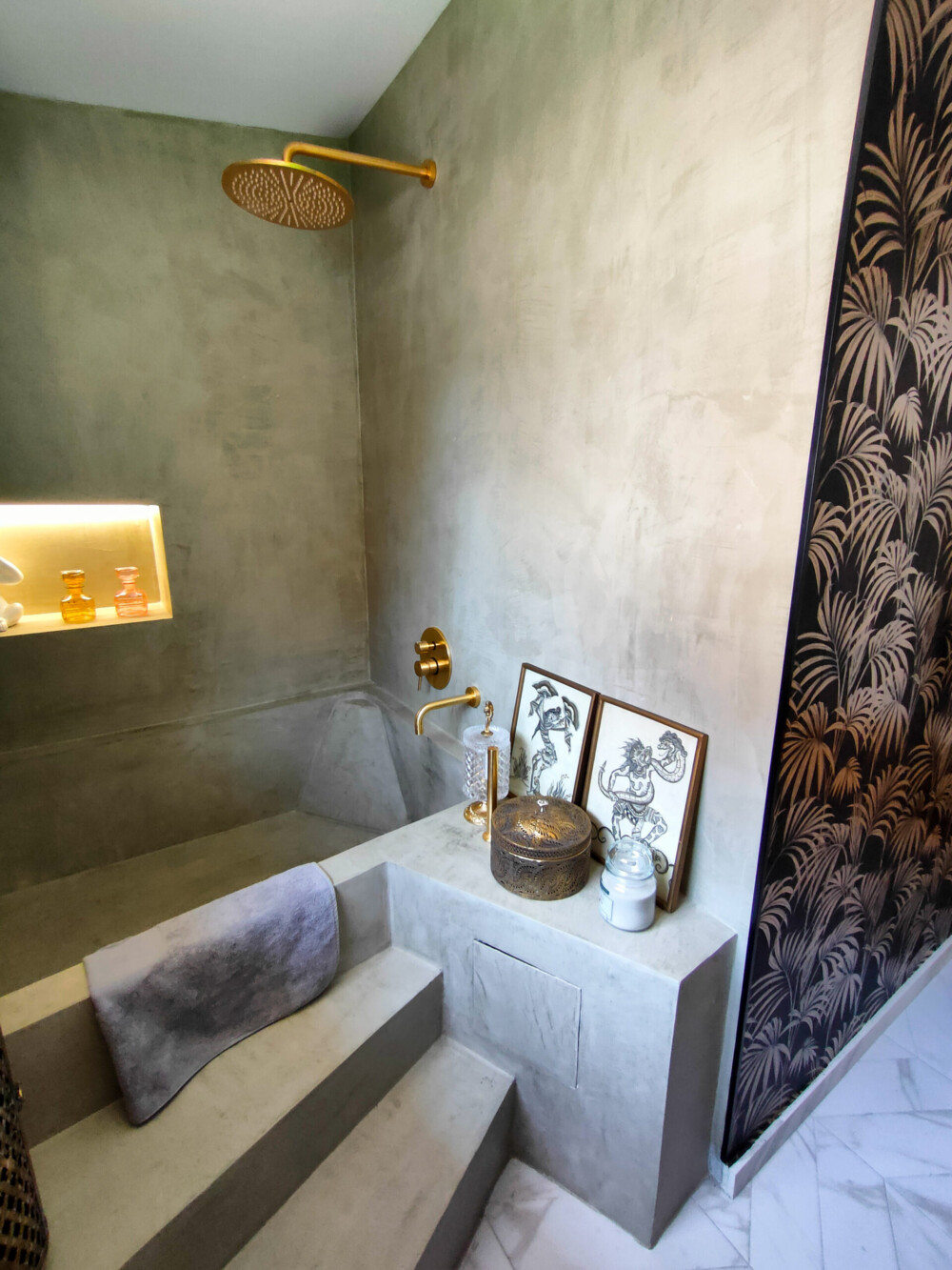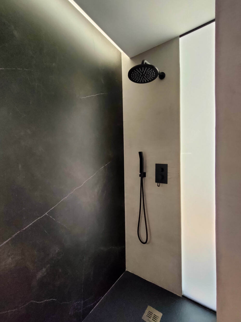 In addition to the architectural and interior design project, a technical lighting project – with many indirect LED lights – was also designed and developed. Also, an interesting custom-made bathtub was designed -including access steps-, of considerable dimensions, as a hammam, all of it covered with microcement.